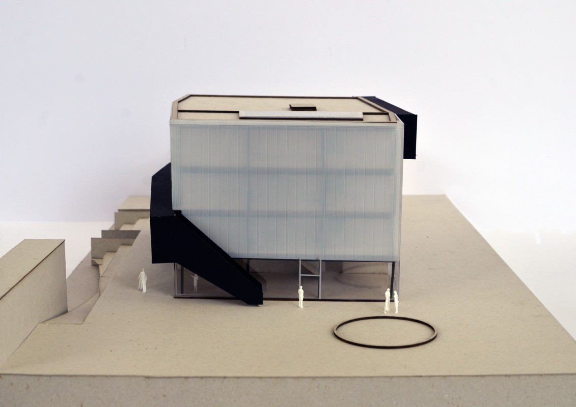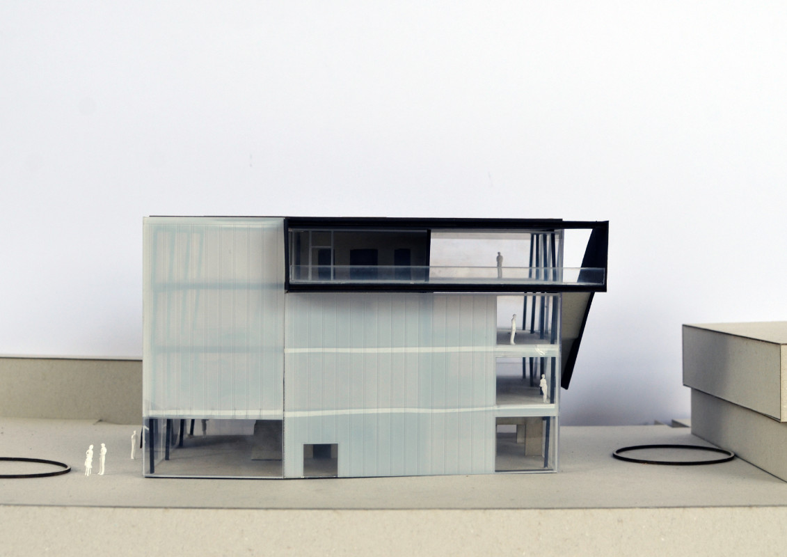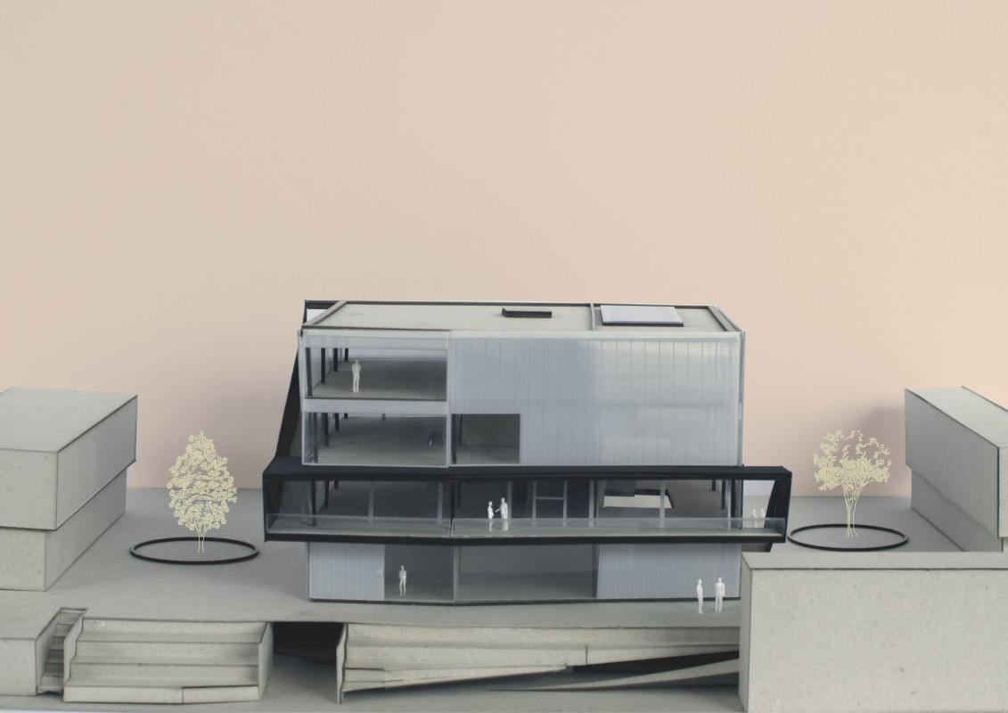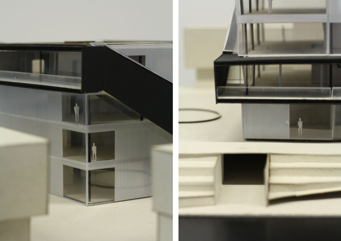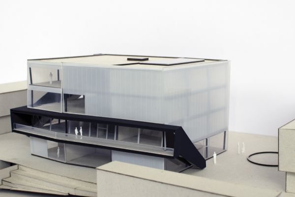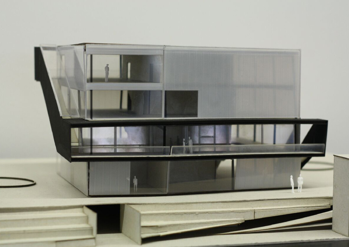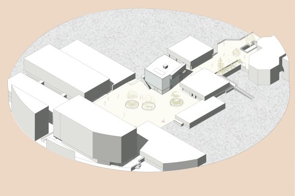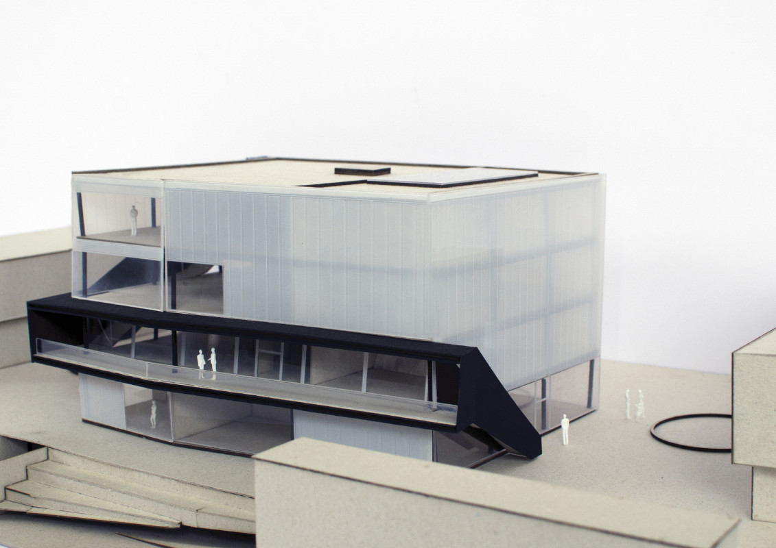 Durch den Abriss einer obsolet gewordenen Bibliothek in zentraler Lage auf dem Campus, bietet sich die Möglichkeit einen neuen Treffpunkt zu schaffen, der fakultätsübergreifenden Austausch ermöglicht. Neben Ausstellungsräumen, einem Café und großzügigen Arbeitsbereichen für Studenten, liegt das Augenmerk des Entwurfes auf der Schaffung von bisher noch nicht vorhandenen Sport- und Ruhebereichen.
