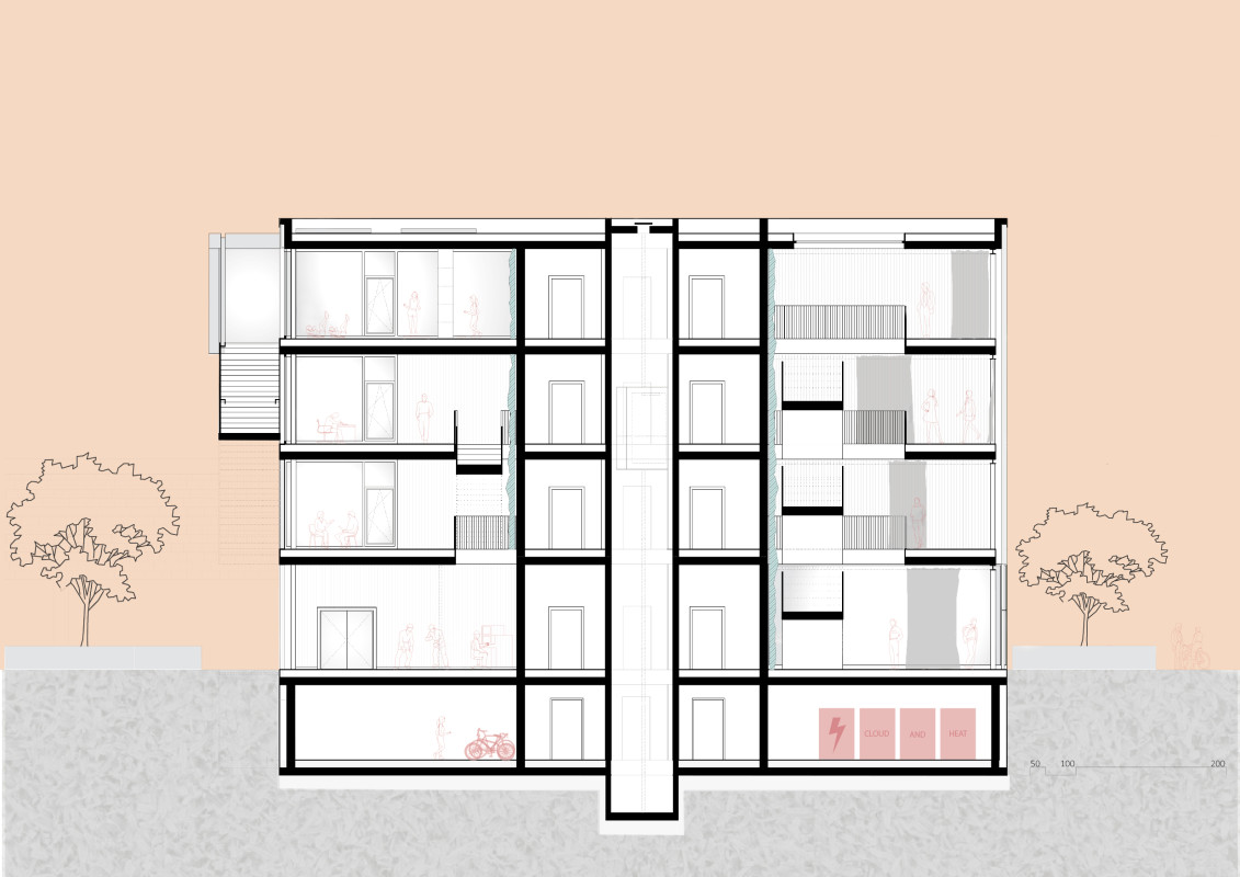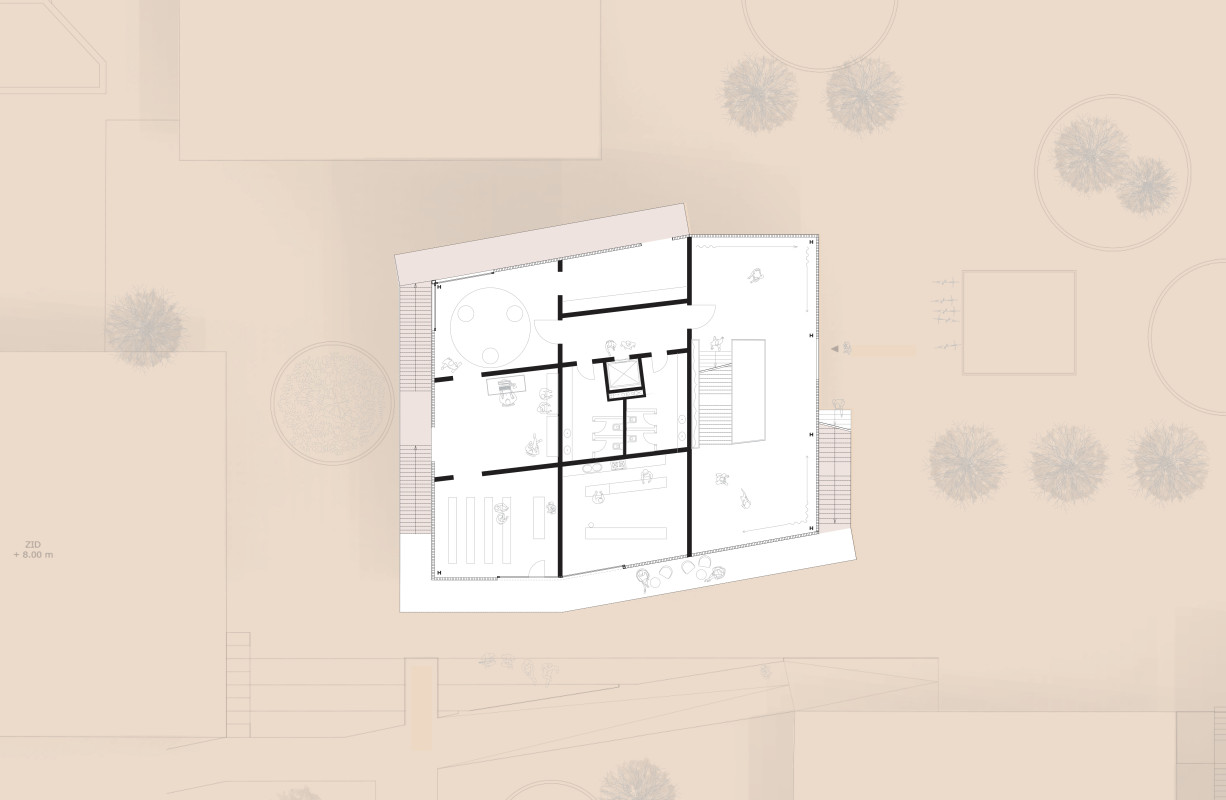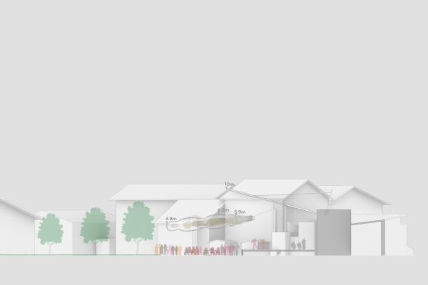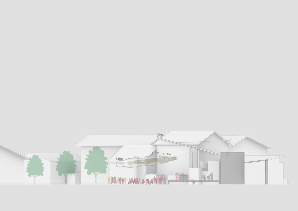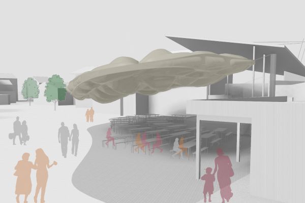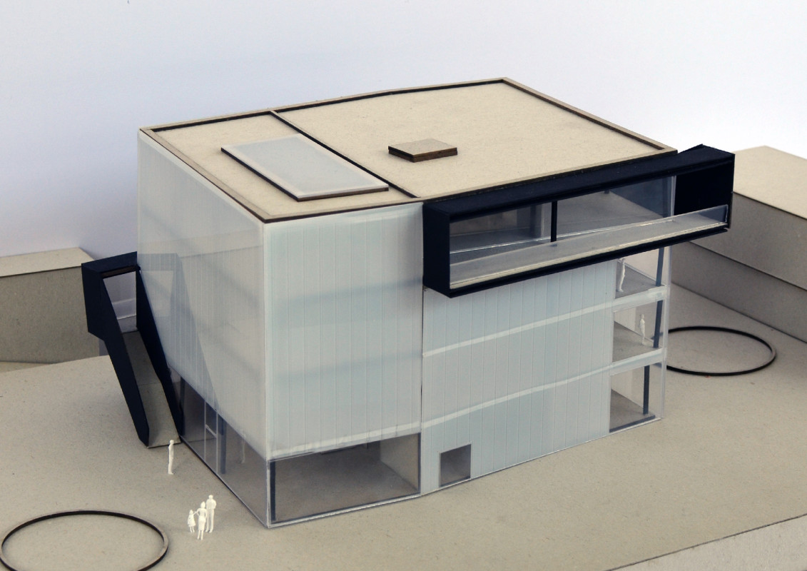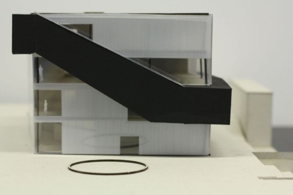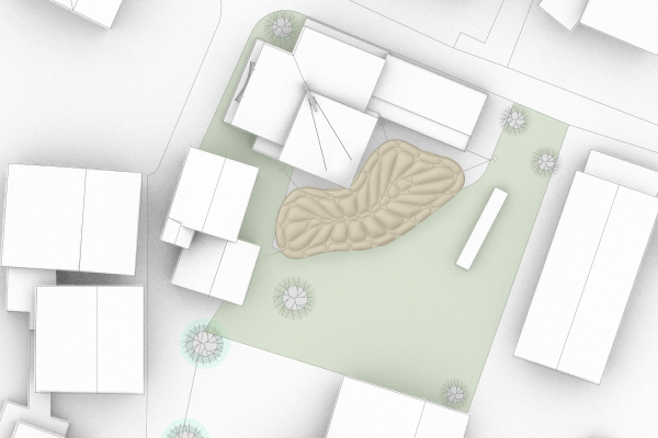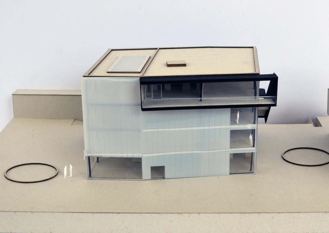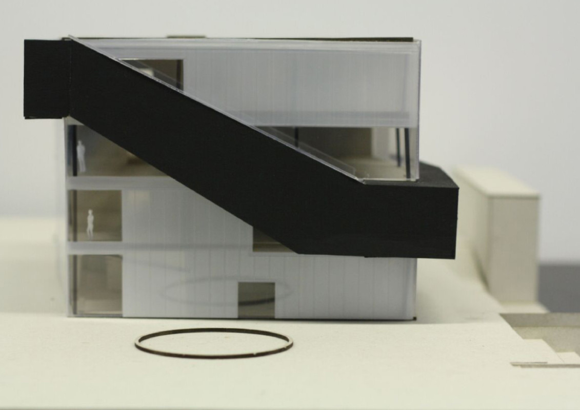 Durch den Abriss einer obsolet gewordenen Bibliothek in zentraler Lage auf dem Campus, bietet sich die Möglichkeit einen neuen Treffpunkt zu schaffen, der fakultätsübergreifenden Austausch ermöglicht. Neben Ausstellungsräumen, einem Café und großzügigen Arbeitsbereichen für Studenten, liegt das Augenmerk des Entwurfes auf der Schaffung von bisher noch nicht vorhandenen Sport- und Ruhebereichen.