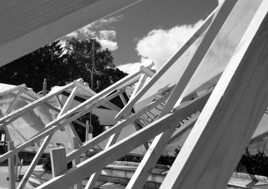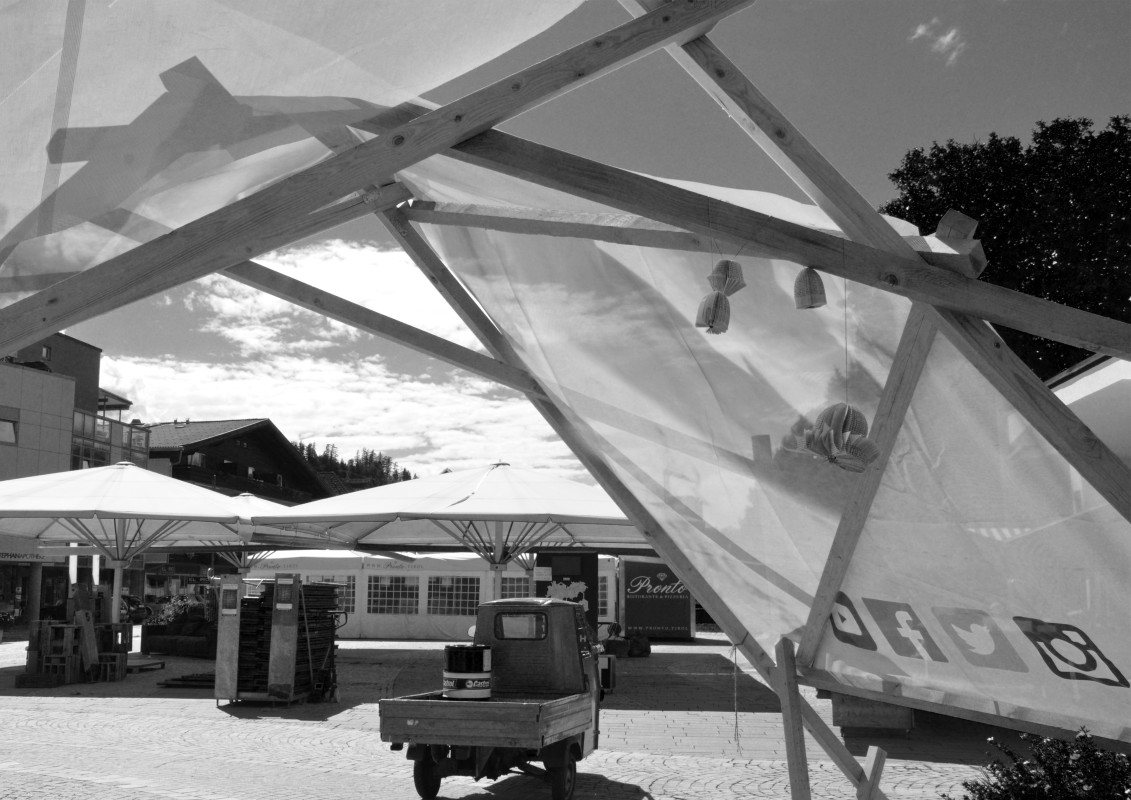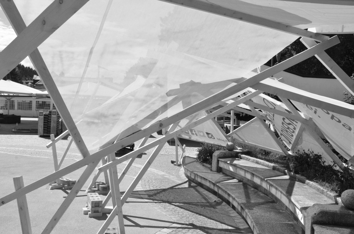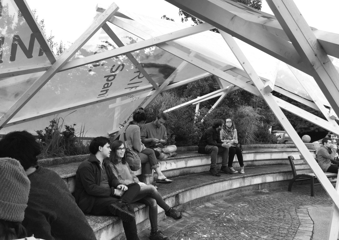 Der Pavillon wurde im Rahmen einer Sommerveranstaltung umgesetzt, um beschattete Sitzplätze zu schaffen. Durch den mehrtägigen Aufbau wurde das Interesse der Passanten geweckt und eine Kontaktfläche geschaffen.
