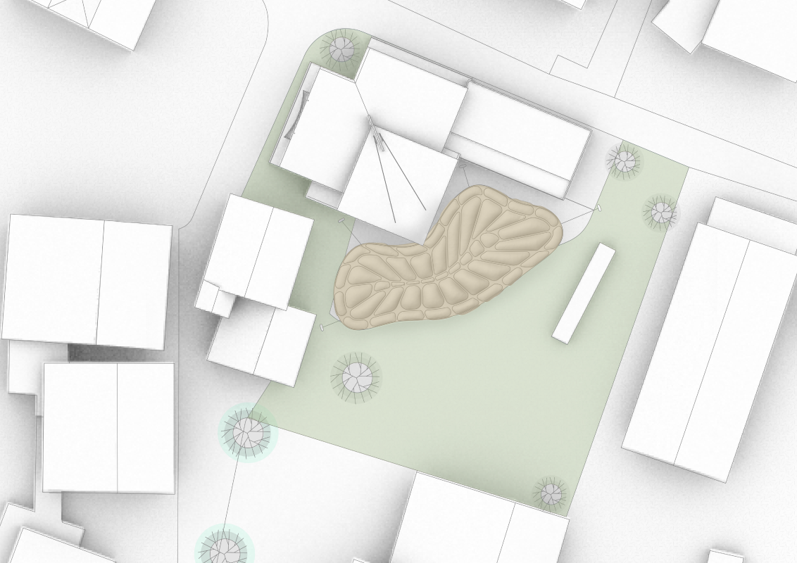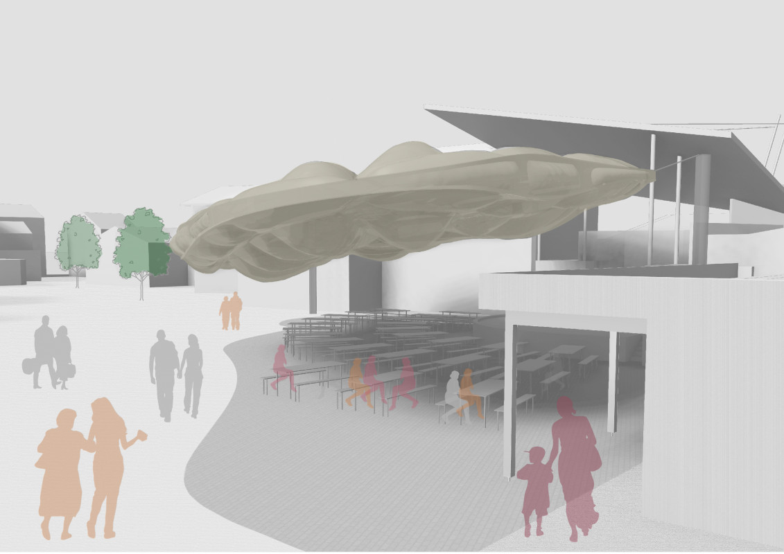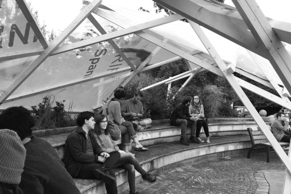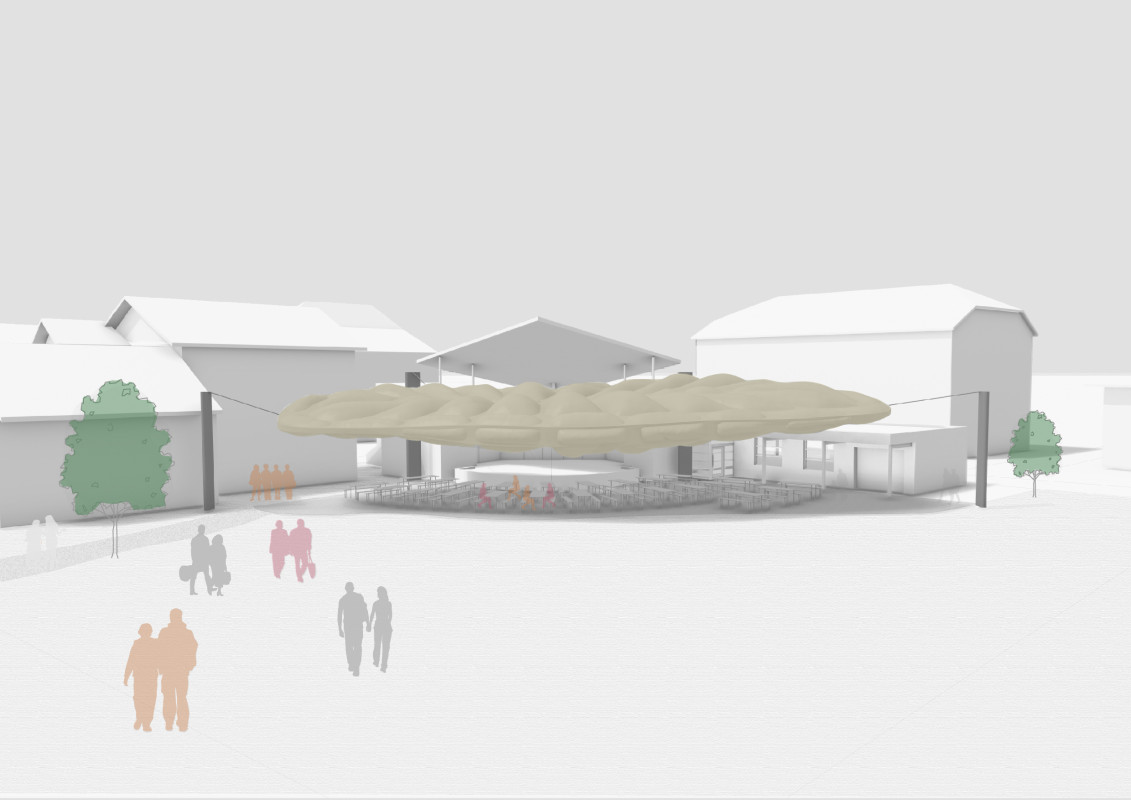 Der Pavillon wurde im Rahmen einer Sommerveranstaltung umgesetzt, um beschattete Sitzplätze zu schaffen. Durch den mehrtägigen Aufbau wurde das Interesse der Passanten geweckt und eine Kontaktfläche geschaffen.