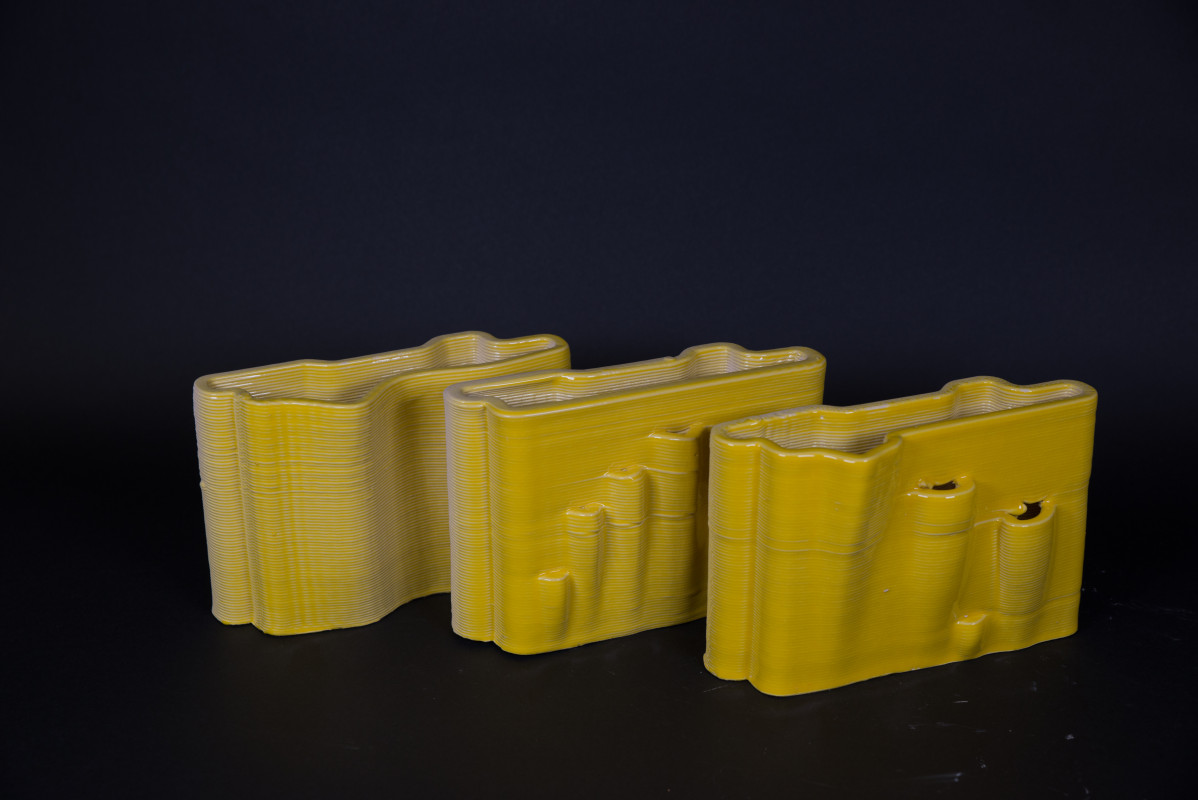 Diese Wandkacheln wurde im Rahmen eines Tondruck-Seminars gestaltet und können mit einer indirekten Beleuchtung kombiniert werden.